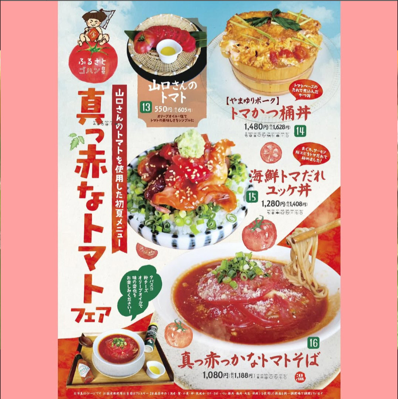 ふるさとゴハン食堂では期間限定で山口さんのトマトを使った初夏メニューが登場です☀️
