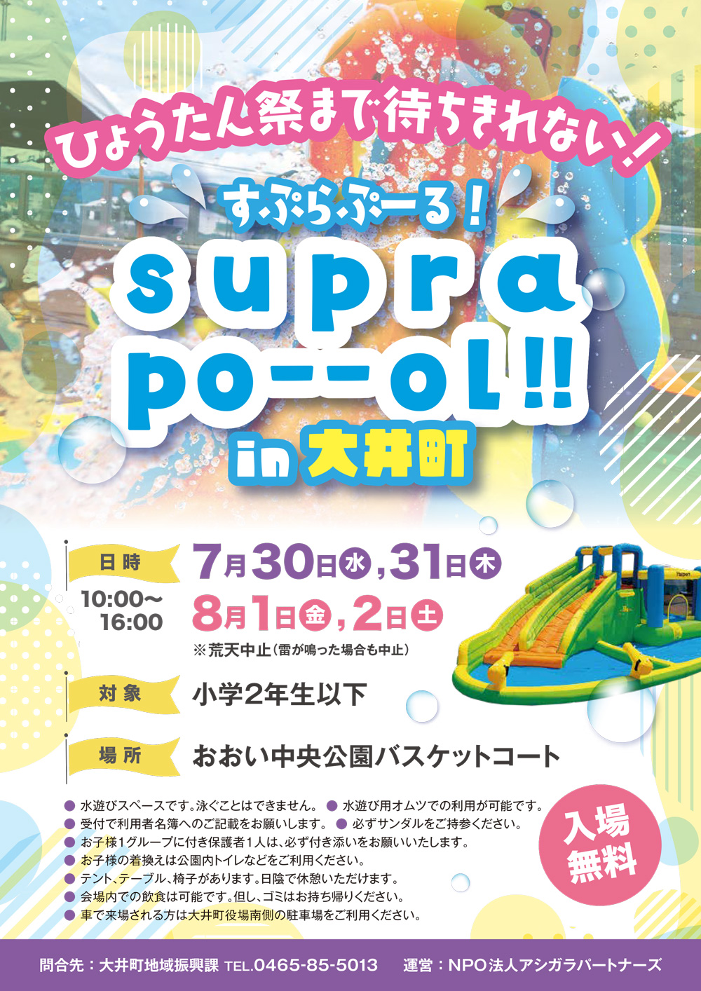 対象は小学2年生以下のお子さま。滑り台付きの楽しいプールが無料で楽しめます!