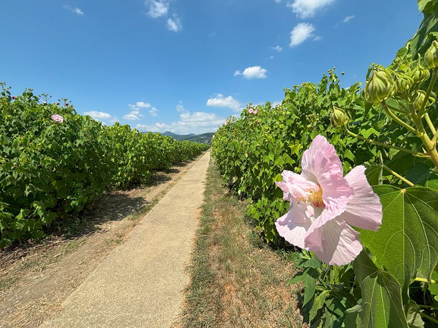 南足柄市千津島にある「酔芙蓉農道」では、まもなくその名を象徴する花「酔芙蓉」が少しずつ咲きはじめます。