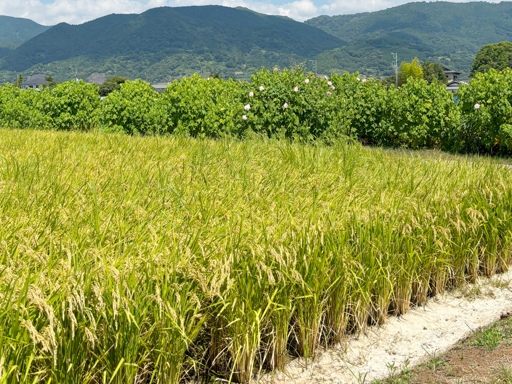 周囲の田んぼに目をやると、実を付けた稲穂は首を垂れ、秋の気配を感じさせます。