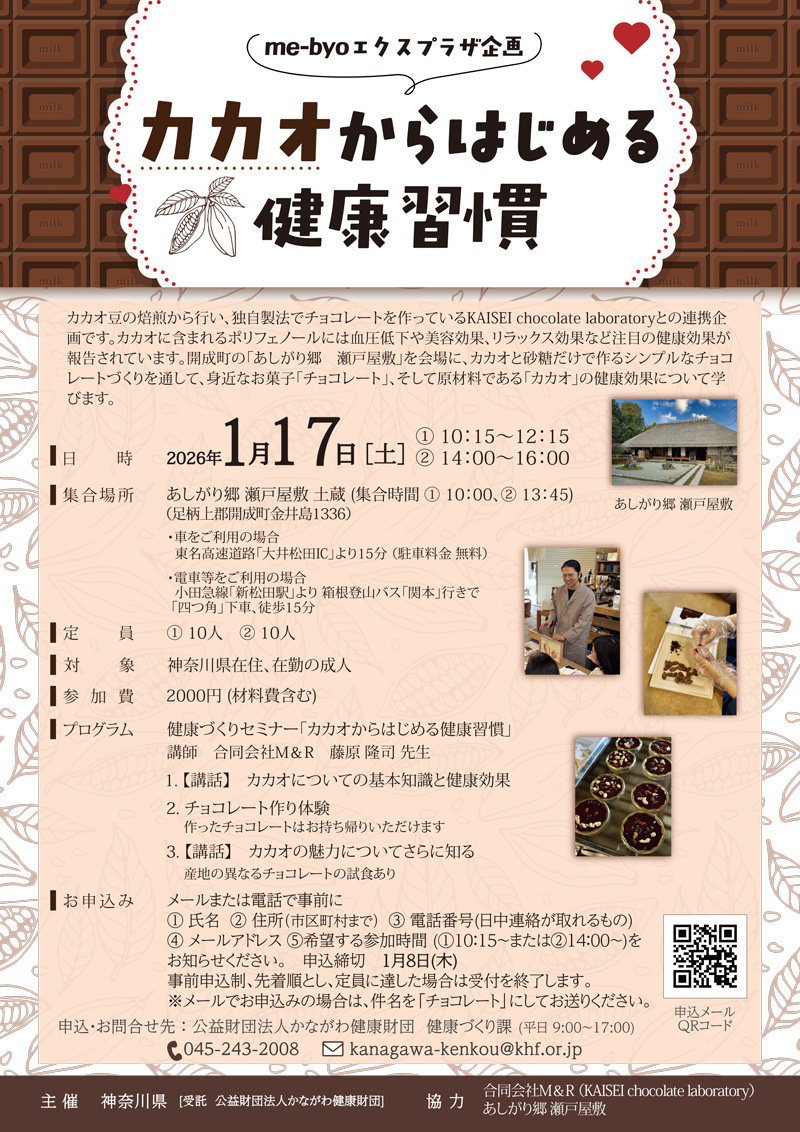 独自製法でチョコレートを手がける「KAISEI chocolate laboratory」と連携した、神奈川県主催・かながわ健康財団企画運営によるイベントです。
