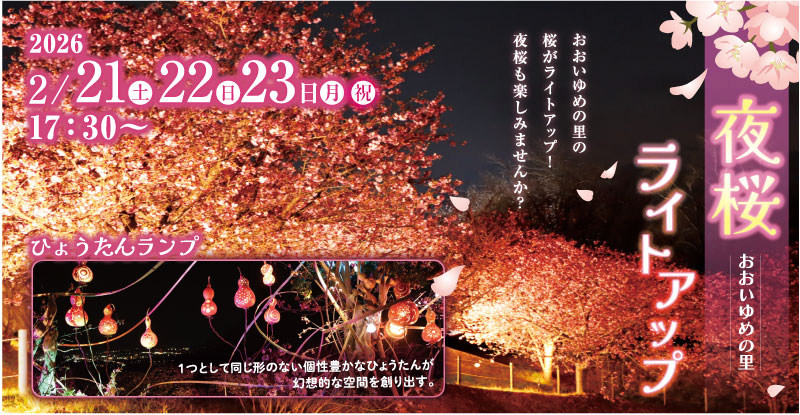 夜はおおいゆめの里の桜がライトアップ!夜桜も楽しみませんか?