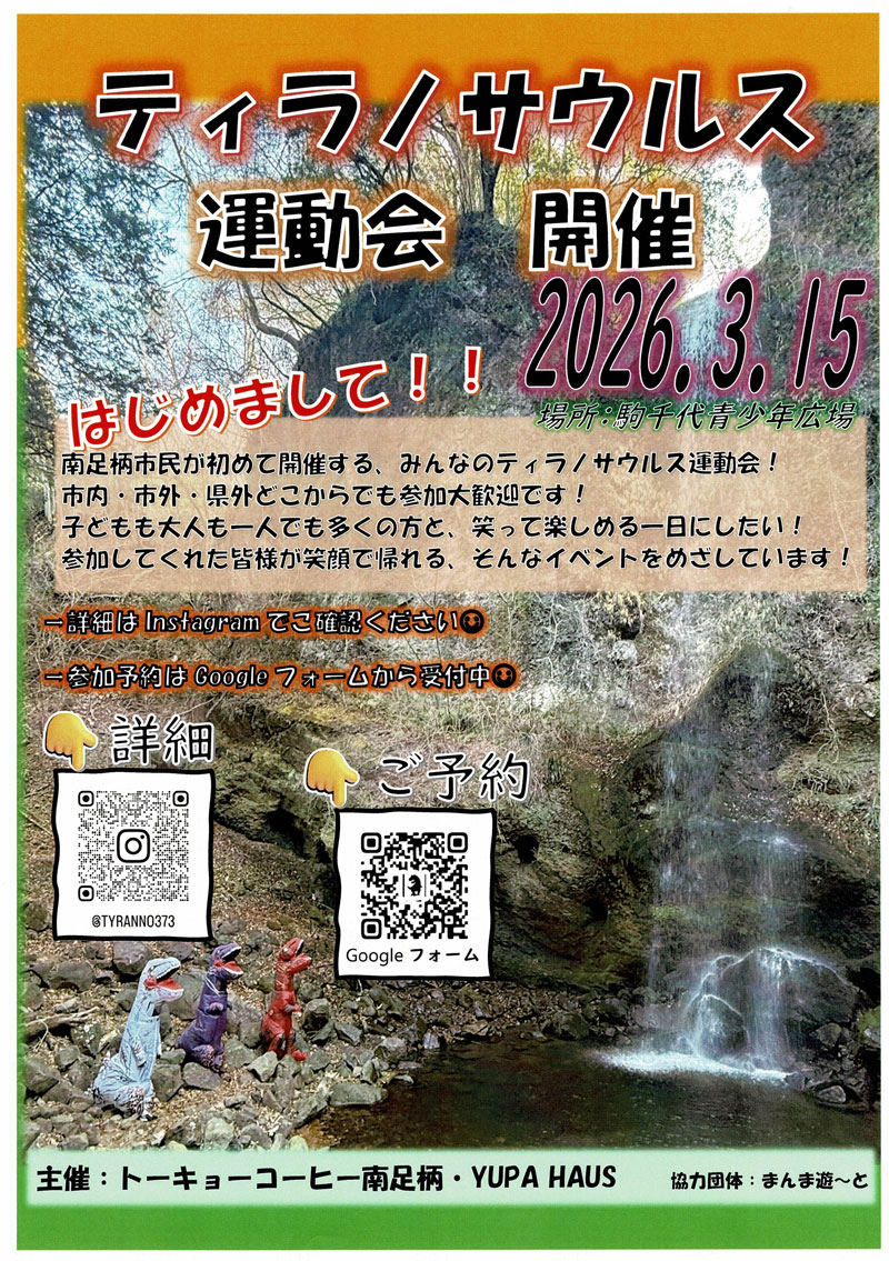 ティラノサウルスの着ぐるみを着用し、全力疾走や様々な競技を行うアメリカ発祥のシュールでコミカルな参加型イベントです。