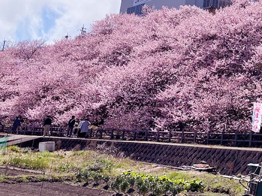 JAかながわ西湘の選果場下の斜面にたくさんの春めきが植林され、花の開花時期には一大ビューポイントになります。