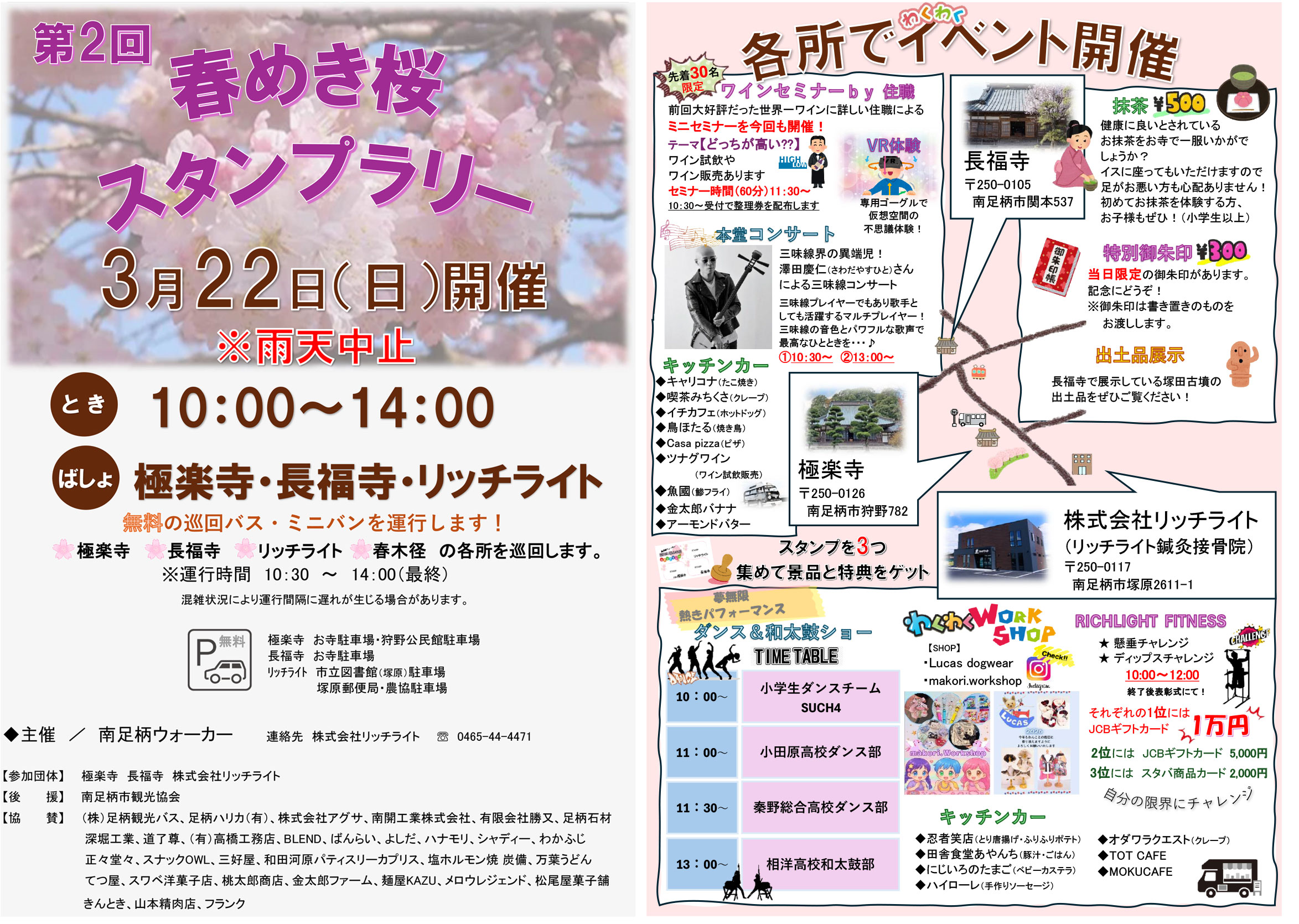 南足柄ならではの桜「春めき」を楽しみながら、極楽寺・長福寺・リッチライトを巡るスタンプラリー。