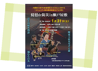 琵琶と和太鼓で語り継ぐ、内閣府のモデル事業指定を受けて開催される防災イベントです。
