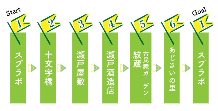 パティスリーブルーシエルで休憩し、1時間弱のコースです。
